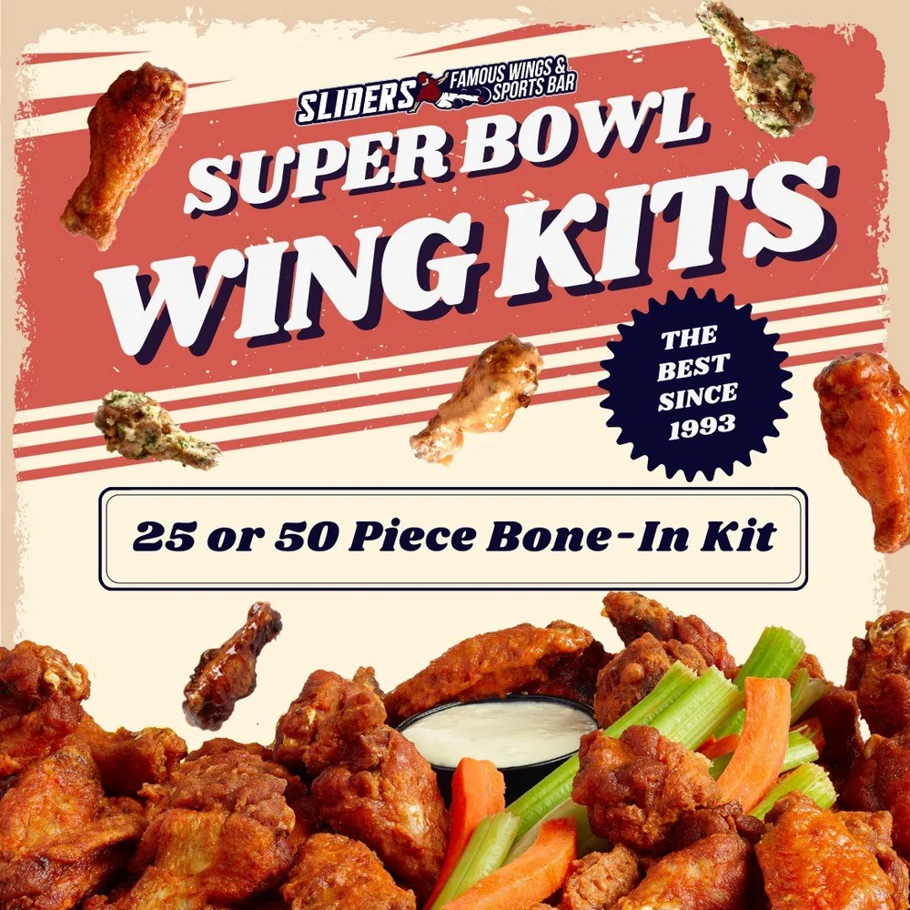 Every Sliders Grill & Bar location delivers the ultimate game-day experience. Guests can choose from two wing kits, both featuring 25 or 50 traditional chicken wings tossed in one of Sliders’ homemade sauces. Each kit includes an extra side of wing sauce, bleu cheese or ranch, fresh carrots and celery, and simple reheating instructions. To ensure every order is timed perfectly, Sliders is accepting reservations for one wing kit every minute from 11am to 6pm. Visit Sliders’ website or stop in on Super Bowl Sunday to enter the Lucky Draw Giveaway for a chance to win exciting prizes. Year after year, Sliders’ turns award-winning chicken wings into the main event for your guests!