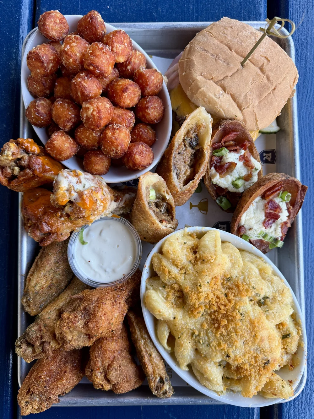 Order for your Super Bowl party, big or small! Selections include apps (bacon-wrapped cheddar tops, house guac & salsa, etc.) and entrees like nachos (feeds 4 or 10), wings (buffalo), mac & cheese, and sausage rolls. Call to place your game day order!