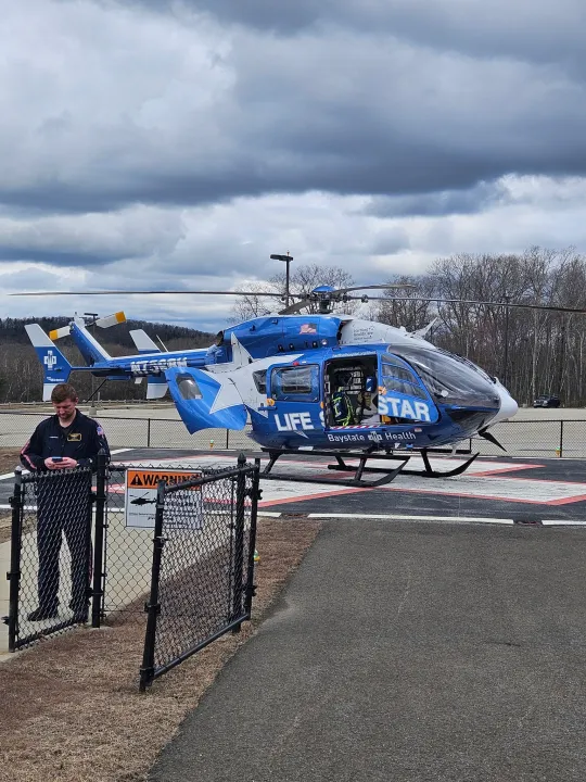 A 75-year-old man was transported via LIFESTAR on Friday after having a heart attack after his car went down an embankment and crashed into a tree in Stafford, according to fire officials.