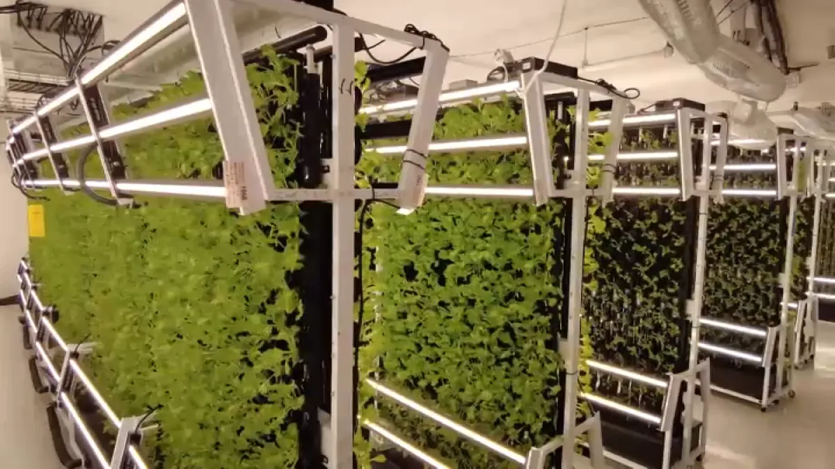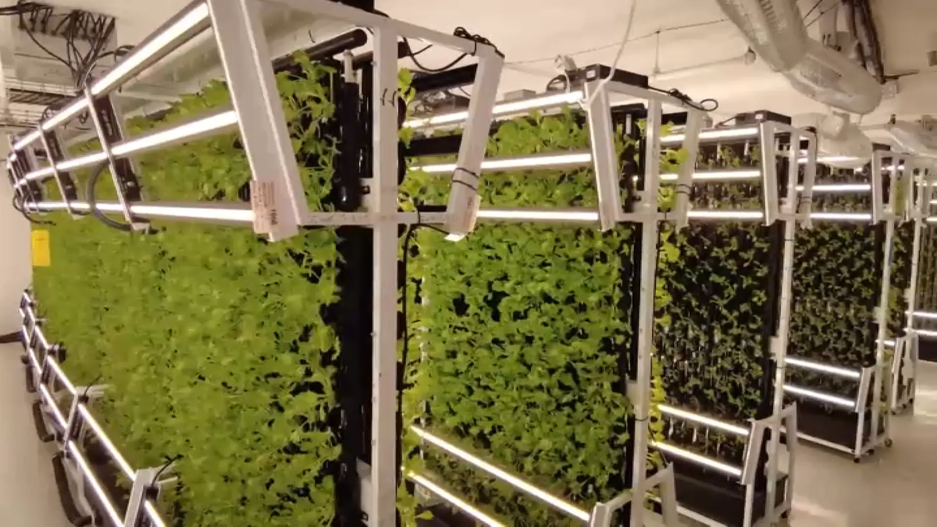 To help simulate the outdoors, bright lights will be on for 12 hours per day, then turn off for 12 hours to simulate night. The farm is efficiently using water and lowering CO2, but also helping its workers grow, too.