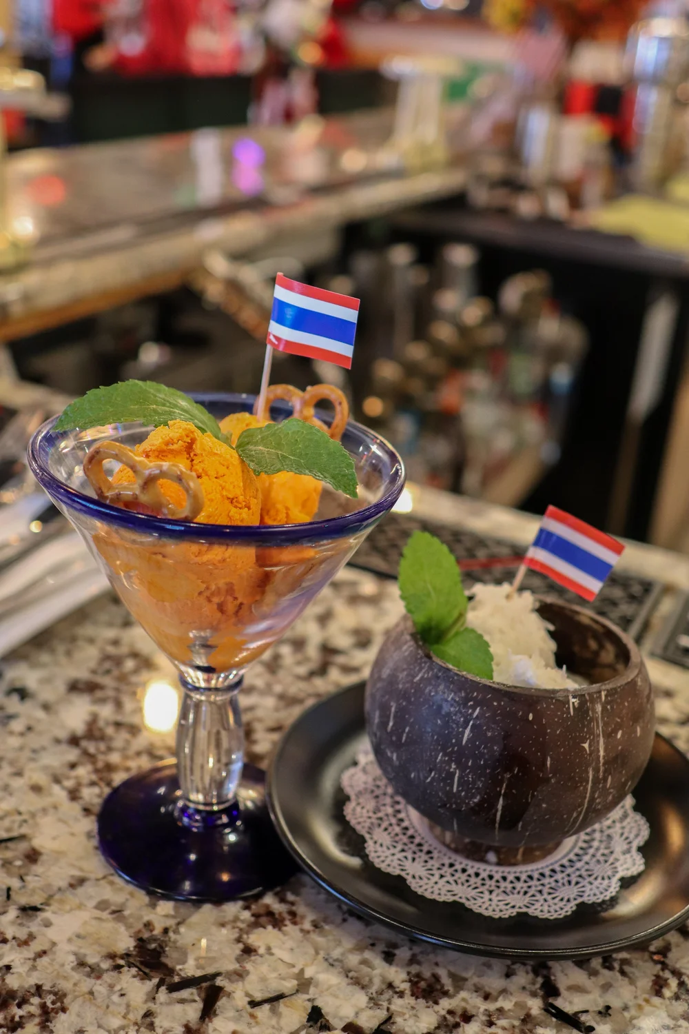 If you’re unfamiliar with Thai cuisine, Jarupan says it’s common to see gyoza (China), pho (Vietnam), and Singapore Mei Fun (a curry seasoned vermicelli stir-fry) in Thailand and on menus in Thai restaurants, including theirs.