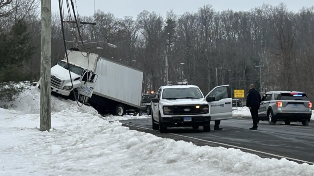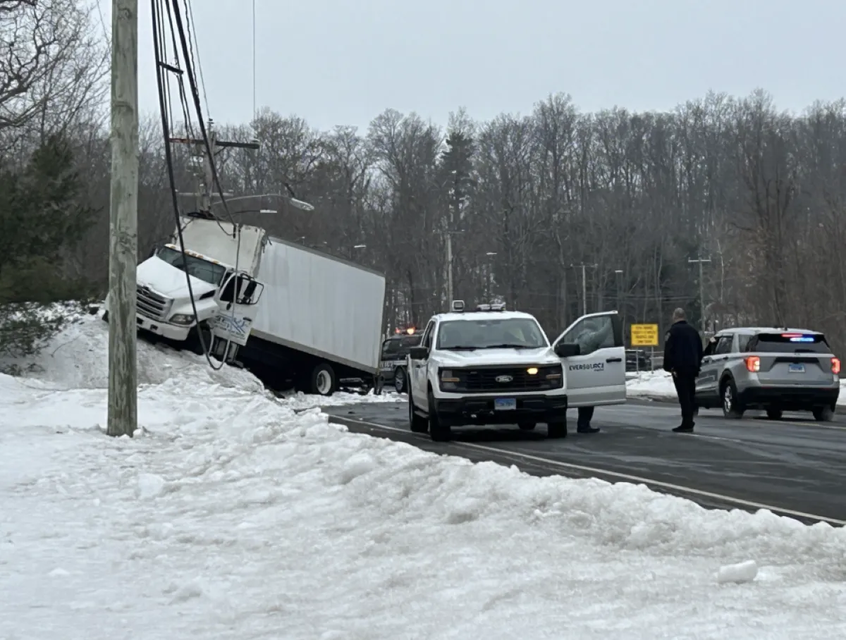As the driver traveled East on Albany Avenue, the truck hit the south side guard rail, sending it off the roadway and toward the pole, police said.