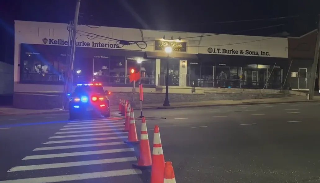 The car crashed into a utility pole.  Police on the scene said the road would be closed for several hours as crews work to repair the pole.