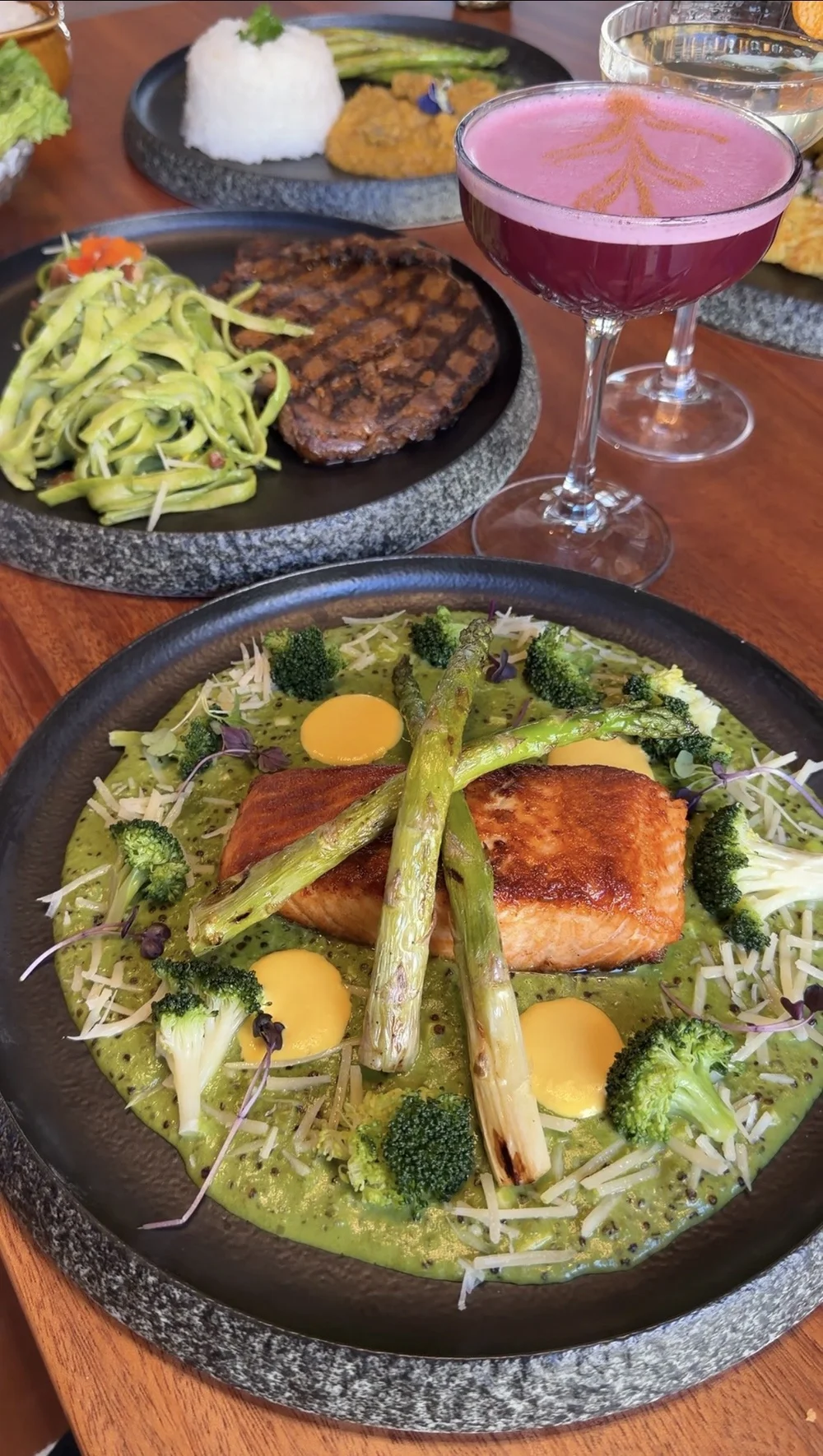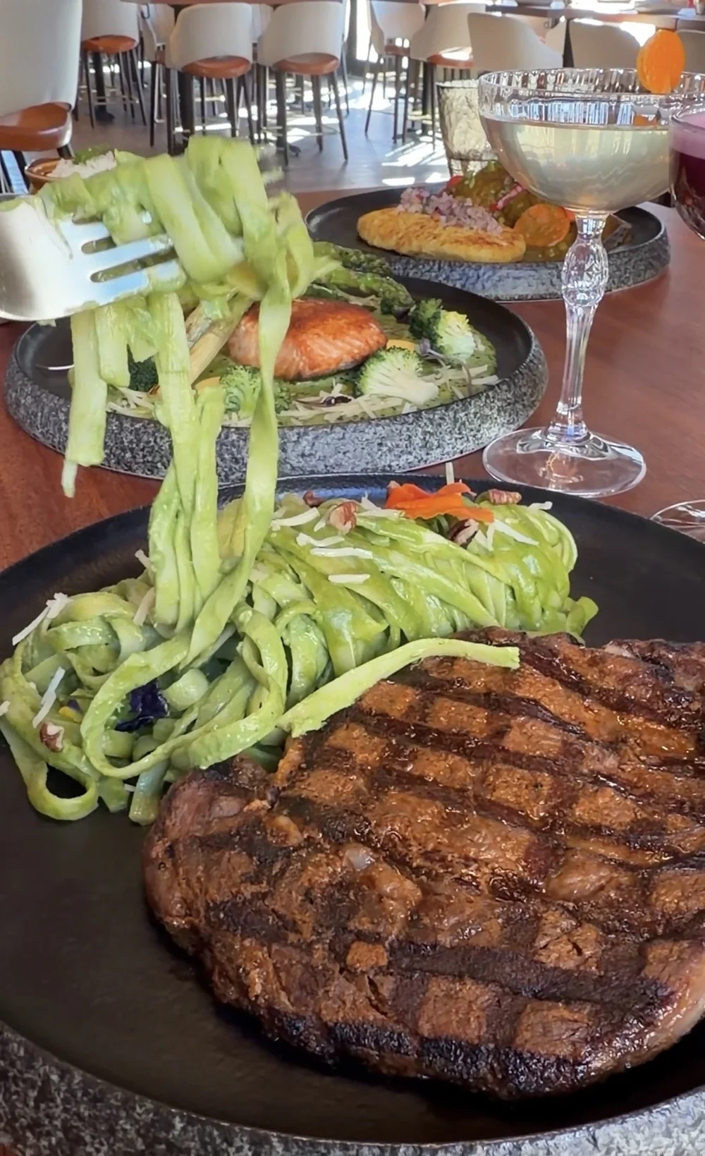 The Blue Back Square menu also offers various ceviche preparations, traditional offerings with white fish and seafood along with a vegan option with avocado and quinoa. Pastas criollas are served with Peruvian pesto or huacaina sauce, with proteins like ribeyes or pork chops. Other dishes include seared salmon over quinoa cooked risotto-style, arroz marinero (Peruvian seafood rice with green peas and red peppers) and pescado bien macho, a fried fish fillet covered in creamy seafood sauce.