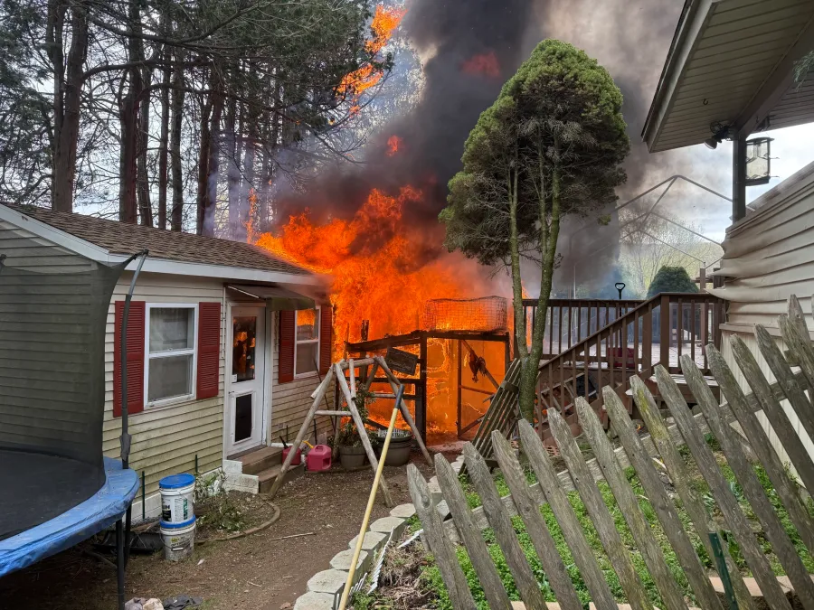 Crews battle Saturday afternoon shed fire in Naugatuck