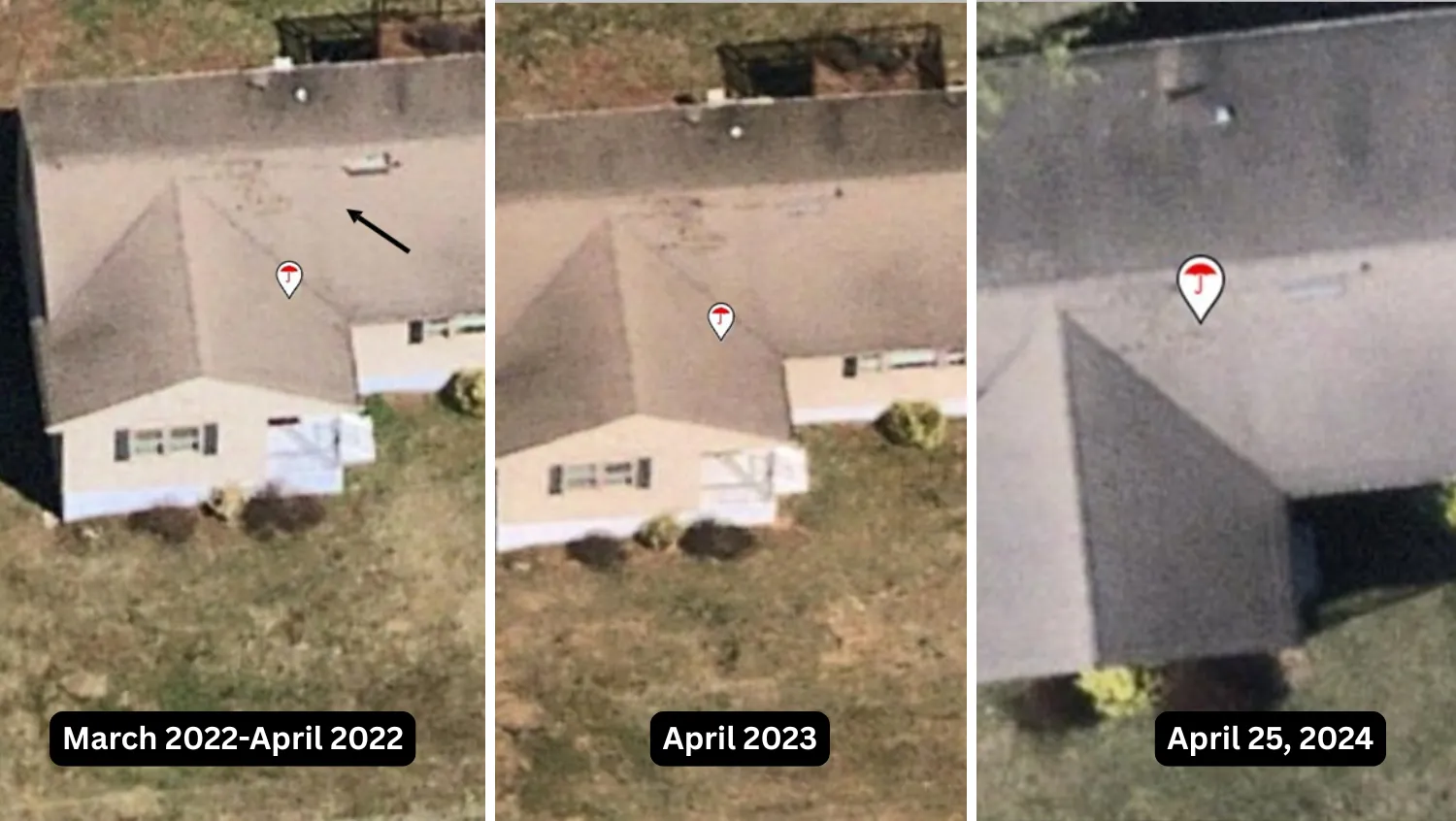 A spokesperson for the company said Travelers believes the July 2025 photo does show pre-existing damage, which may have been exacerbated by the October storm. The spokesperson provided additional Nearmap aerial images from 2023 and 2024, asserting there were missing shingles that were never repaired.
