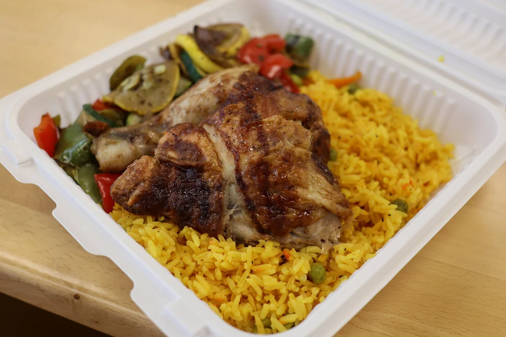 When you walk into Fire & Spice, what Choudhary and the team have ready to go are stewed chicken dishes, rice, veggies, and more, but the rest of it, cooked fresh in the back, are Peruvian specialties like pollo a la brasa (including that green sauce everyone loves), lomo saltado, plus, kebabs and pinchos.