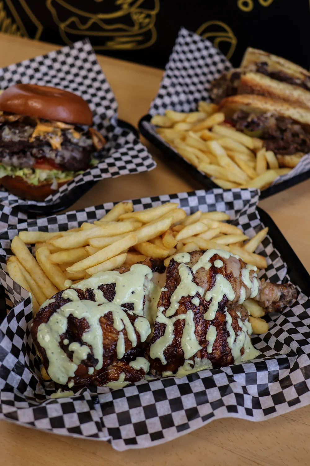 “I found out about him (Emilio), we connected via email, and I asked him to take care of the kitchen side,” Choudhary says. “He managed it and we worked that way for a while. One day he came up to me with an idea for a concept that’s popular in other places. We looked at this property and I asked him if it would be a good fit, he said it would be, so we started working on this together. I bought this property, renovated it to this, brought in a charcoal oven from Peru and we decided to bring in burgers, cheesesteaks, loaded fries. At the same time, we wanted to have prepared food, too, because everyone nowadays is in a rush, so some of it, if you come in, it’s available right away. Sandwiches, stuff like that, five, 10 or 15 minutes.”