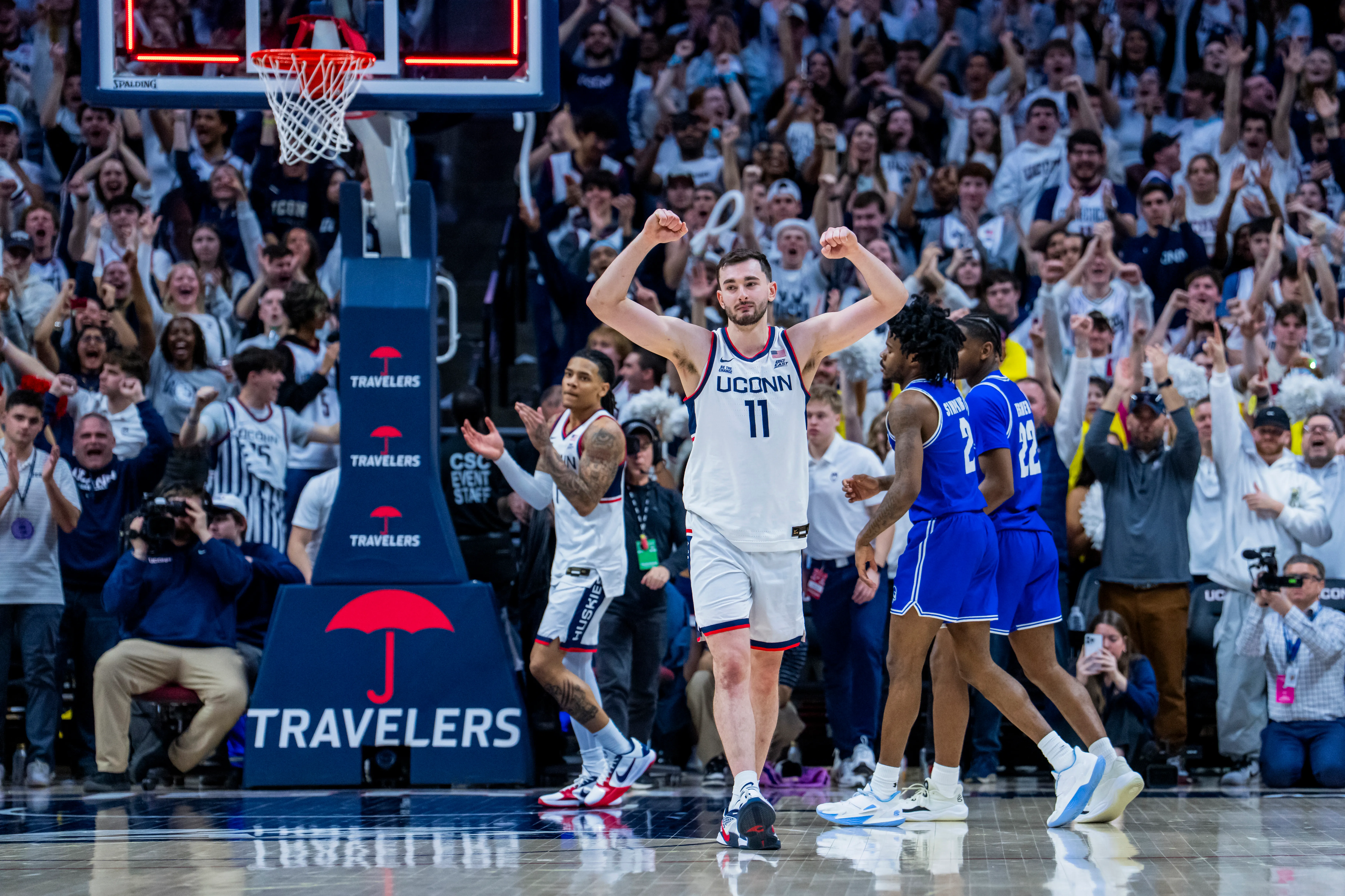 Karaban, also second in career 3-pointers, was honored along with Tarris Reed Jr., Dwayne Koroma, Alec Millender and Malachi Smith in the final home game of the season for the Huskies.