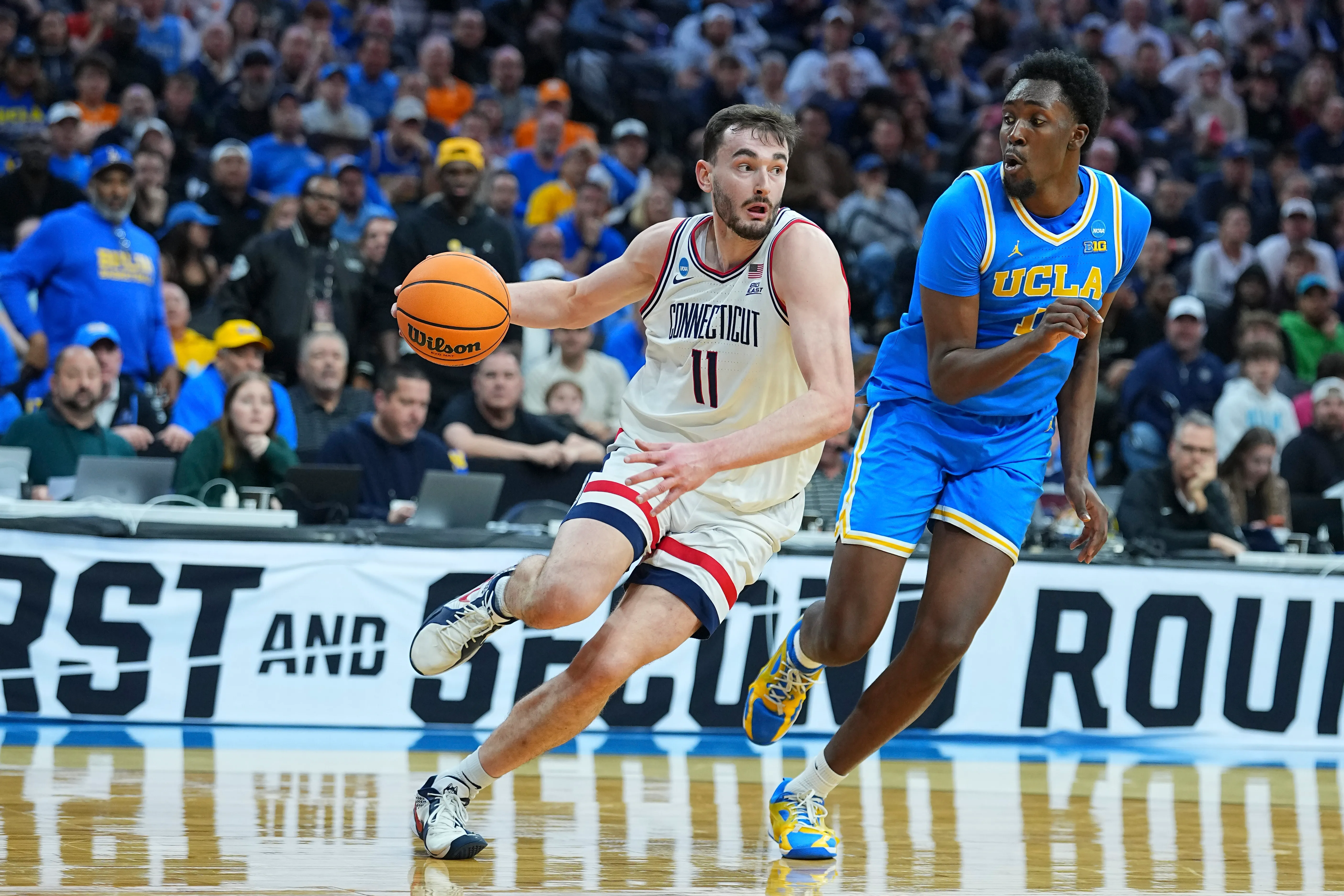 UConn’s Tarris Reed Jr. would be hard-pressed to duplicate the monster performance of 31 points and 27 rebounds he had in the opener. He followed with a more workmanlike double-double of 10 points and 13 rebounds. Braylon Mullins scored 17 points for UConn.