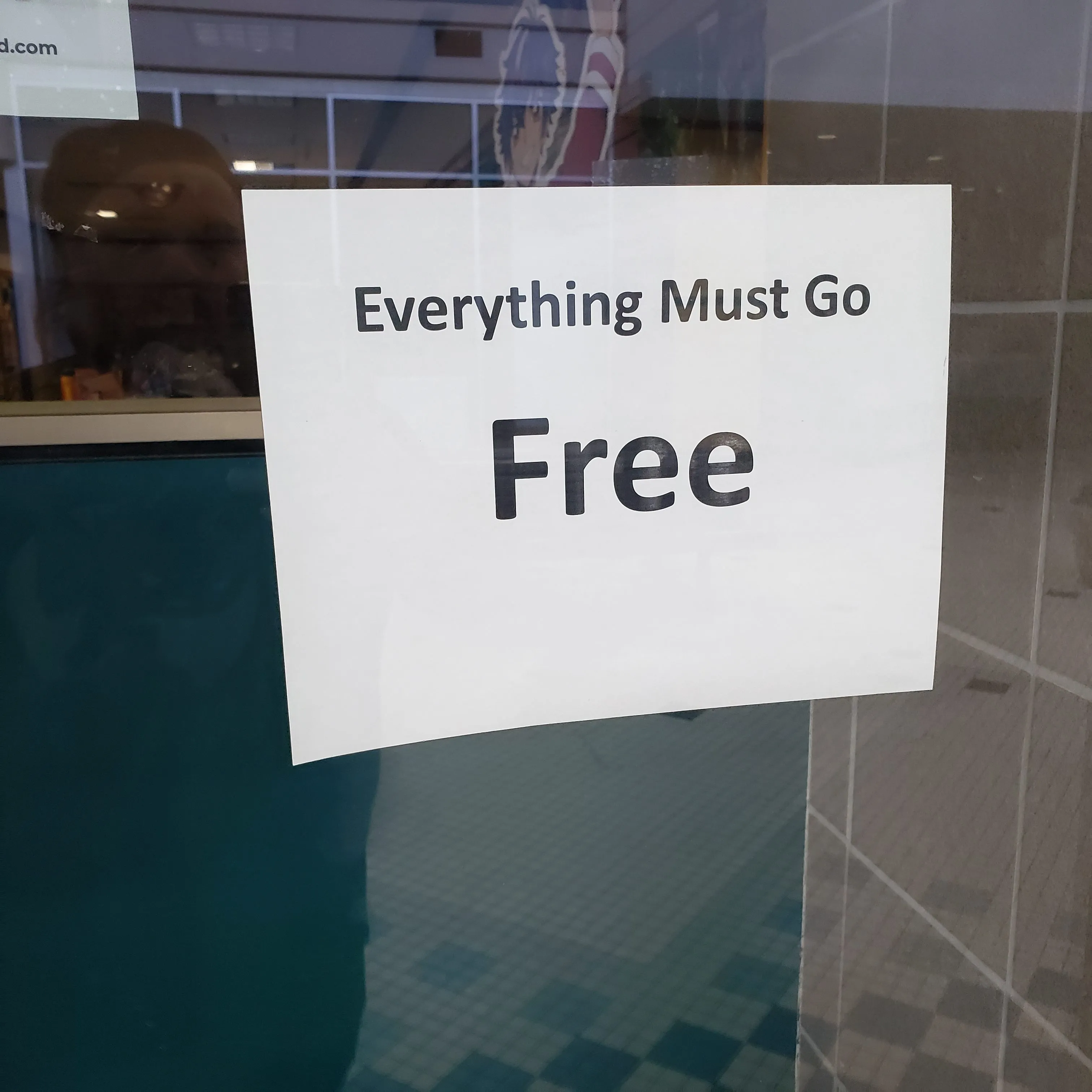 The thieves also posted a sign in the window of the business that stated, “Everything must go, FREE.”