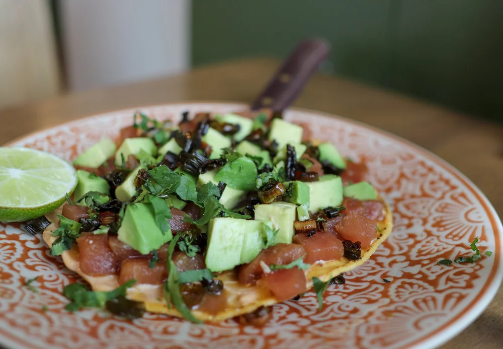 Tuna tostada – tuna crudo, chipotle aioli, fried leeks, avocado. It’s not only a customer favorite, it’s one of Monegro’s, too, who admittedly isn’t big into seafood, but after trying it during his travels, it hooked him.