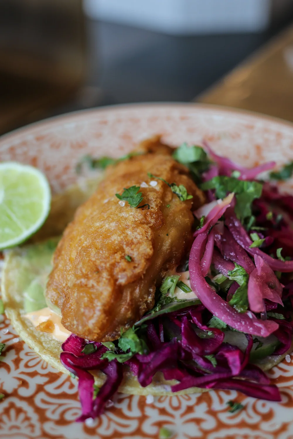 Baja fish tacos w/Modelo beer battered and fried cod