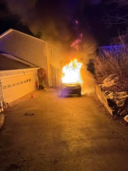 PHOTOS: Hybrid vehicle fire causes minor damage to nearby house in Cheshire