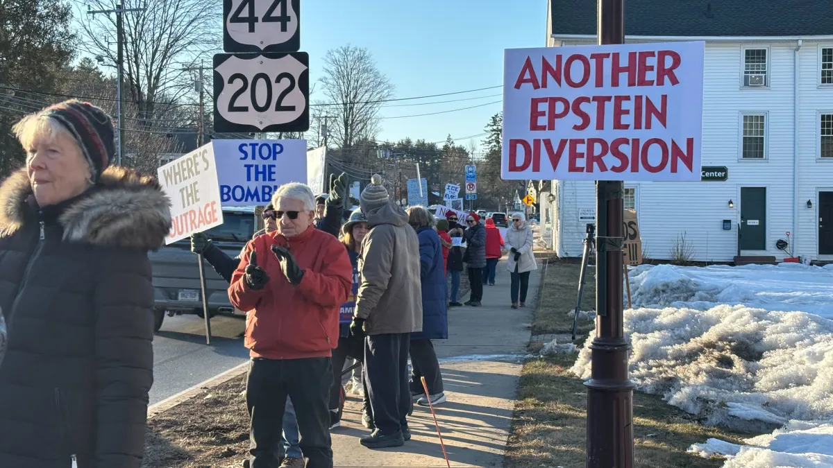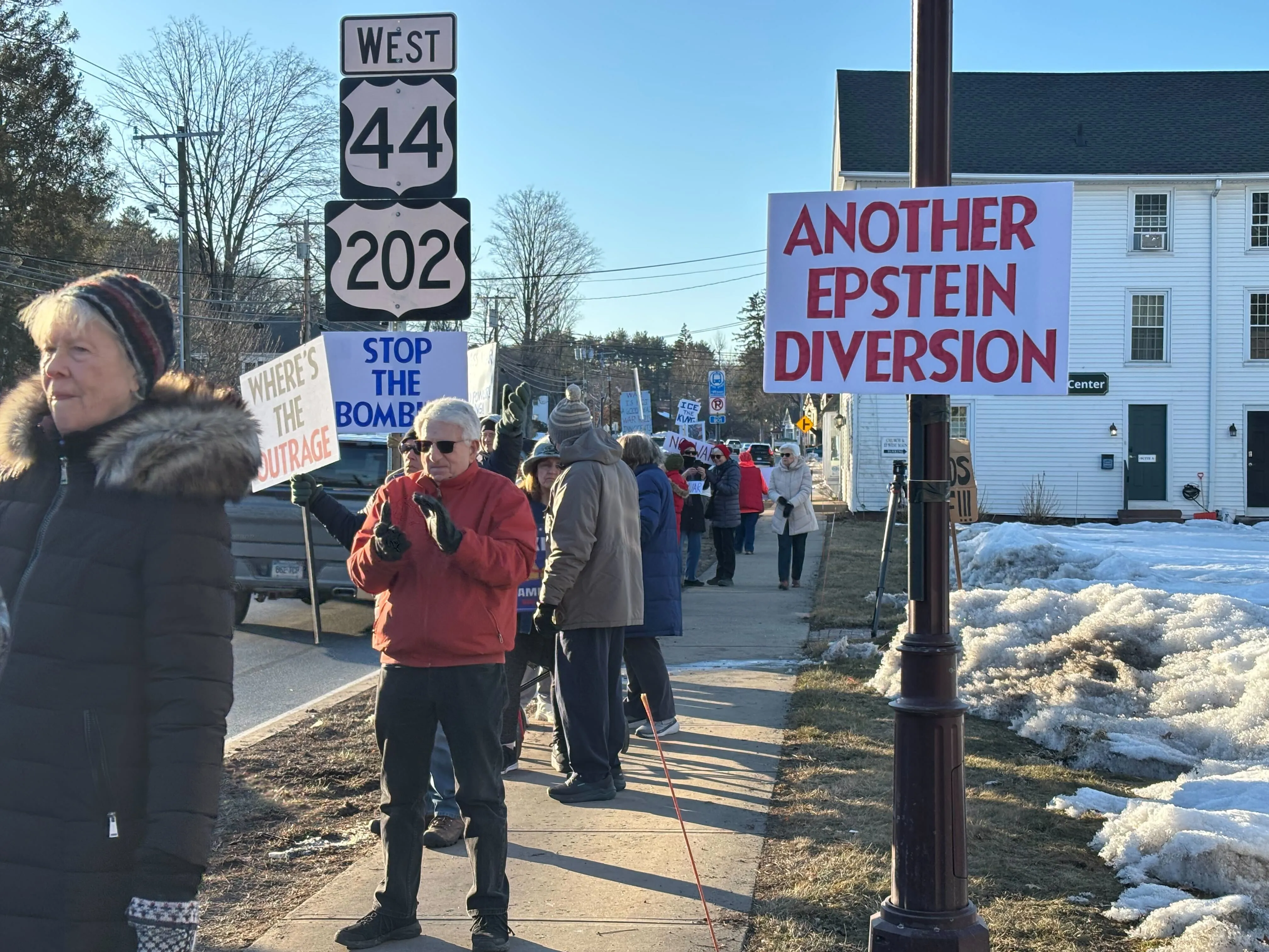 As cars passed by on Route 44 in Simsbury, protestors carried signs and banners, all with the same message: “No war with Iran.” Some of them feel President Trump is overstepping his authority as commander-in-chief.