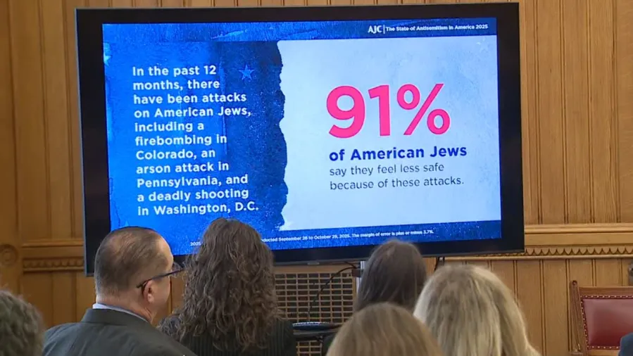 A new report from the American Jewish Committee reveals a sharp rise in antisemitism across the United States, with 91% of American Jews feeling less safe as a Jewish person in the U.S., prompting state lawmakers and Jewish leaders to call for stronger education efforts and action to combat hate.