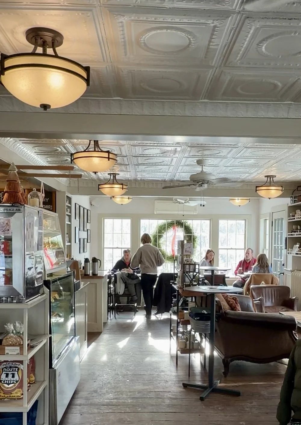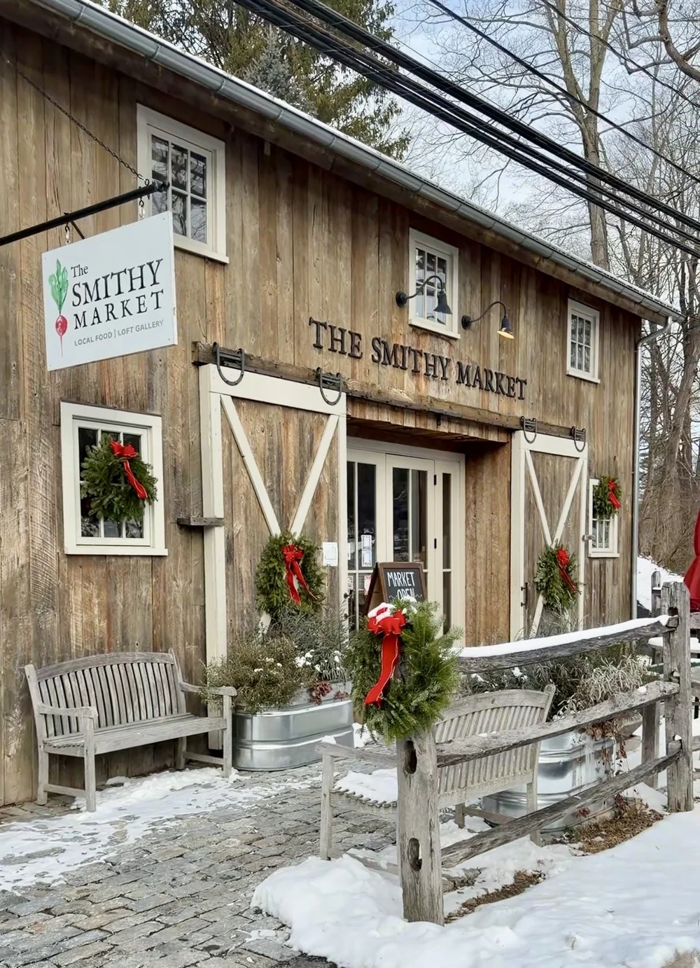 On a speck of Main Street in New Preston, the Smithy Cafe feels like it’s always been there. Coffee cups clink, steam hisses from the espresso machine, and customers pick up loaves of Farmers & Cooks sourdough while waiting in line to place their order at the counter. Across the street, in a 200-year-old former blacksmith shop, the Smithy Market carries the everyday and the aspirational in equal measure: bread, eggs and coffee, alongside gourmet Bridgewater chocolates from Brookfield, micro-batch Wonderland Jam made in Newtown, and East Street Arts handmade printed tea towels from New Haven.