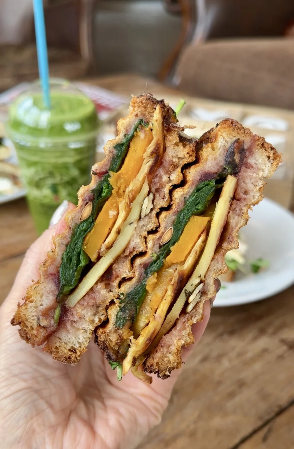 Inside, the menu skews “familiar, with elevated touches,” says Lauren Williams, the General Manager, who joined the business early on and has helped shepherd the market and cafe through their growth. The Lake Waramaug sandwich, with turkey and sprouts, is the cafe’s top seller. When it was cycled off the menu, customers demanded the cafe bring it back. Also popular: golden milk lattes, gooey grilled cheese, butternut apple soup, and a smash burger that’s earned a spot on the specials board for months.