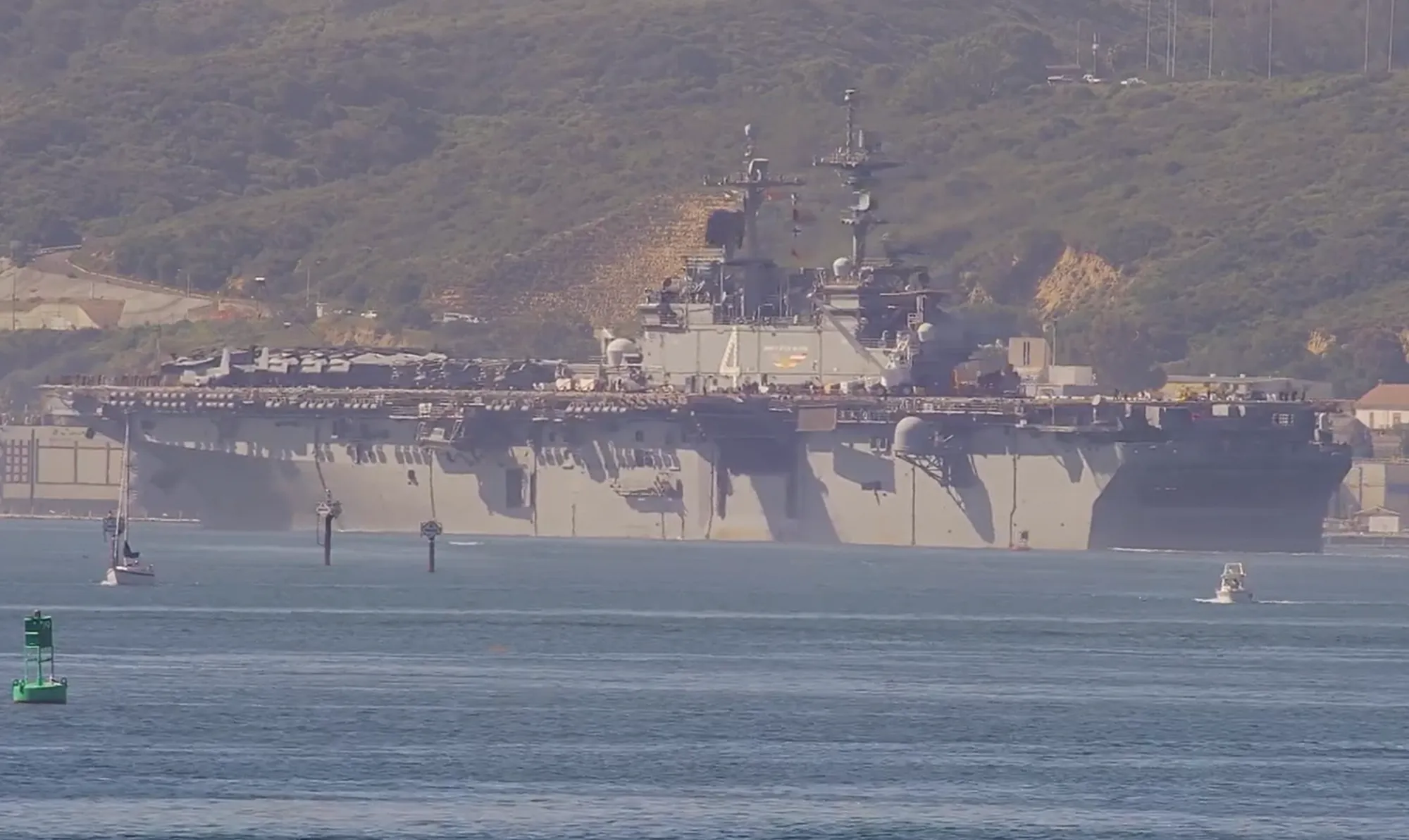 The deployment of USS Boxer was captured by San Diego Web Cam on Wednesday morning.