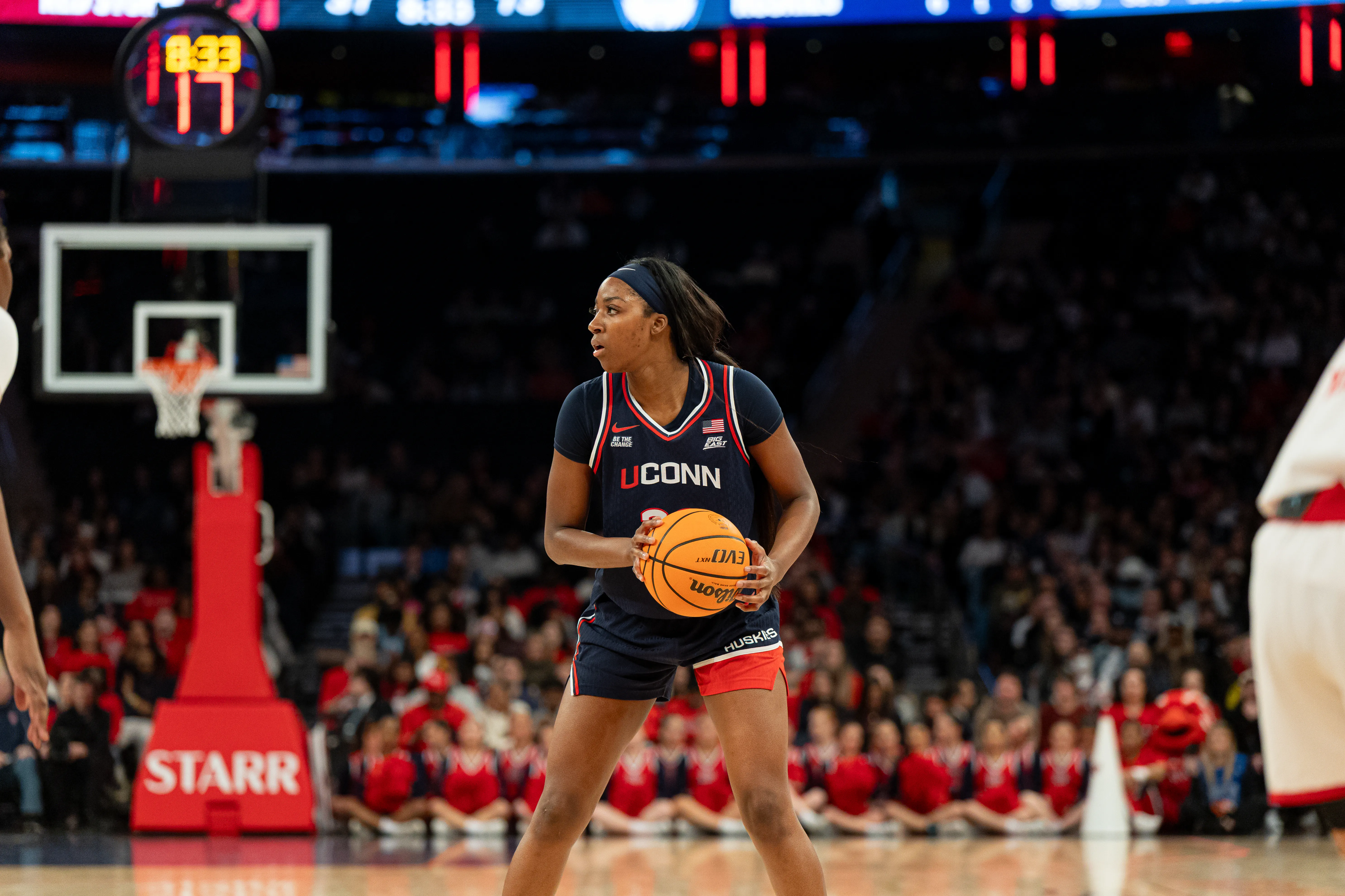 Georgetown scored the game’s first four points. However, Williams had eight points during a 10-0 run to give the Huskies a lead they would not relinquish. The Hoyas went almost seven minutes without a basket in the second quarter. UConn scored 13 consecutive points during that stretch en route to leading 47-18 at halftime.