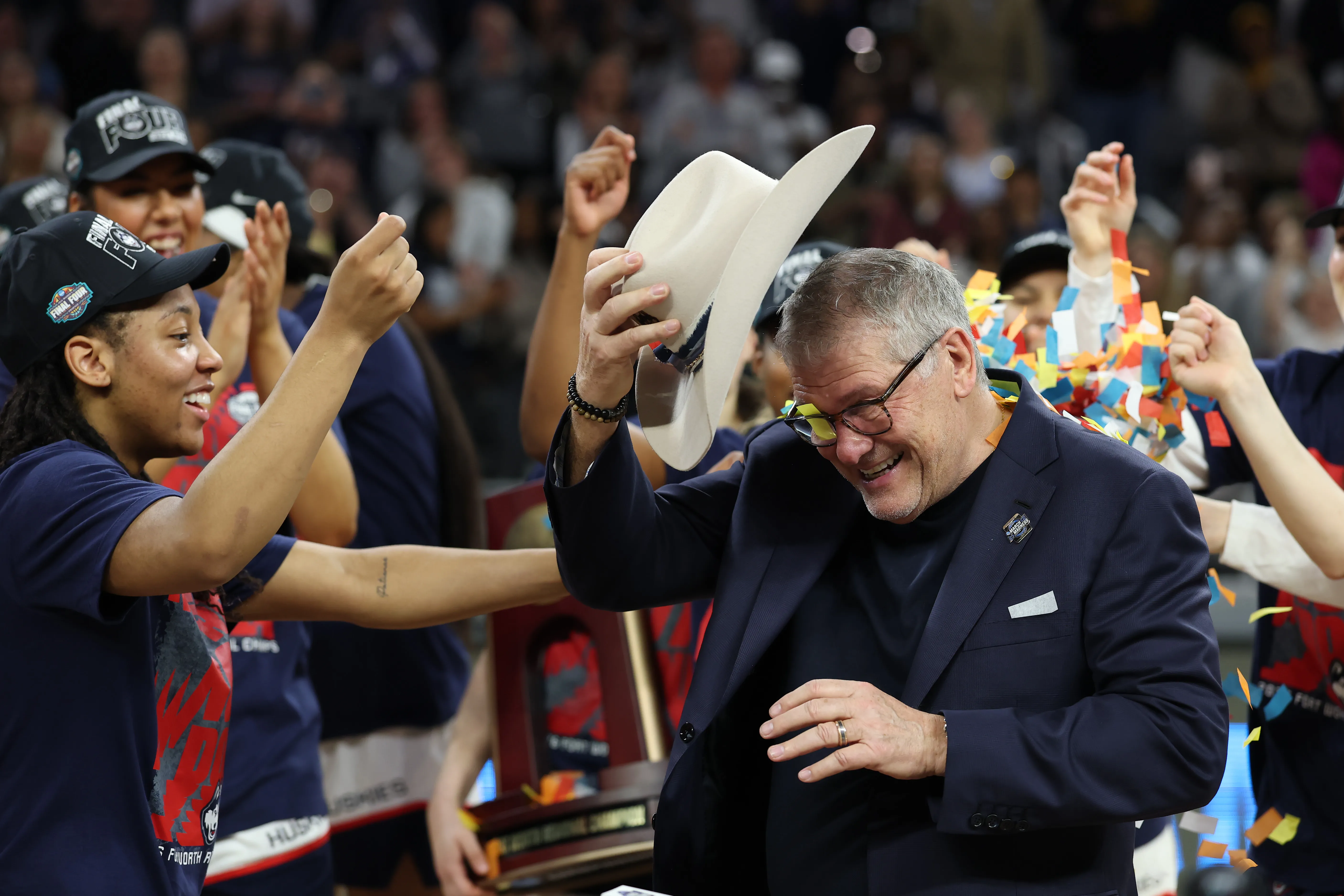 UConn has been the standard in women’s college basketball under coach Geno Auriemma. The Huskies have won 12 national championships, played in 25 Final Fours — a record 14 straight from 2008-22 — and have won 1,288 games in 41 seasons under Auriemma.