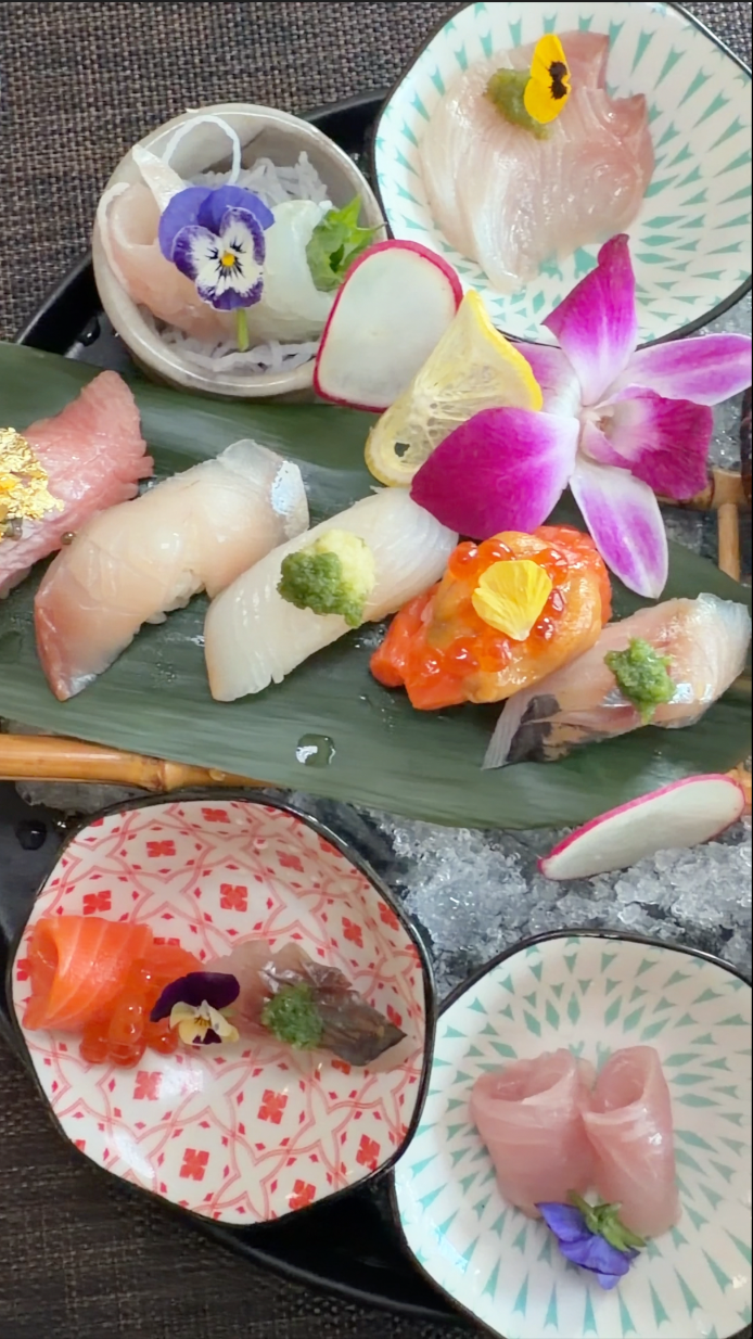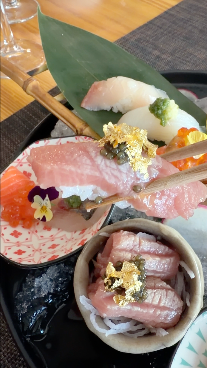 That obsession with freshness was evident on a recent afternoon when I sat down to enjoy a selection of a la carte dishes as well as the omakase, which is served at the tables in the airy dining room and in the adjoining dedicated omakase room with its long blond counter. Four to five chefs, all of whom have worked at various sushi restaurants in Manhattan at one time or another, design their own omakase experiences, of either 12 or 15 courses: two appetizers, eight or 11 pieces of nigiri, one hand roll, and a seasonal dessert like swirled guava-mango gelato or a truffle concealing a gooey espresso center. My chopsticks danced through sumptuous wild king salmon from New Zealand, bluefin belly adorned with caviar and gold flakes, lustrous kinmedai (golden-eye snapper), delicate shima-aji jackfish, and pristine Japanese fluke. Each bite was well balanced, and frankly, a little addictive.