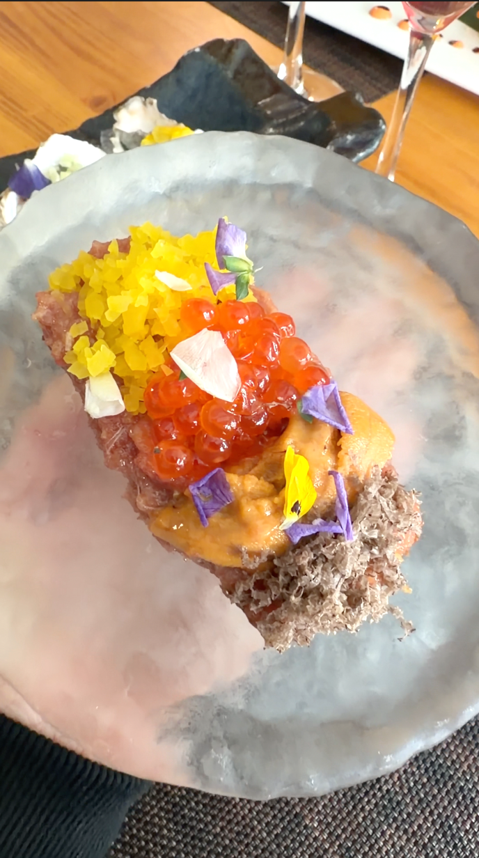 The drinks menu, I discovered, should not be overlooked. It’s modest but curated in a no-fuss way, featuring 10 carefully selected sakes, each offering a unique flavor profile, alongside a lineup of just as many vibrant cocktails. For those who prefer something bubbly, there’s a nice rose from Nicolas Feuillatte and classic Moet & Chandon Brut Imperial.